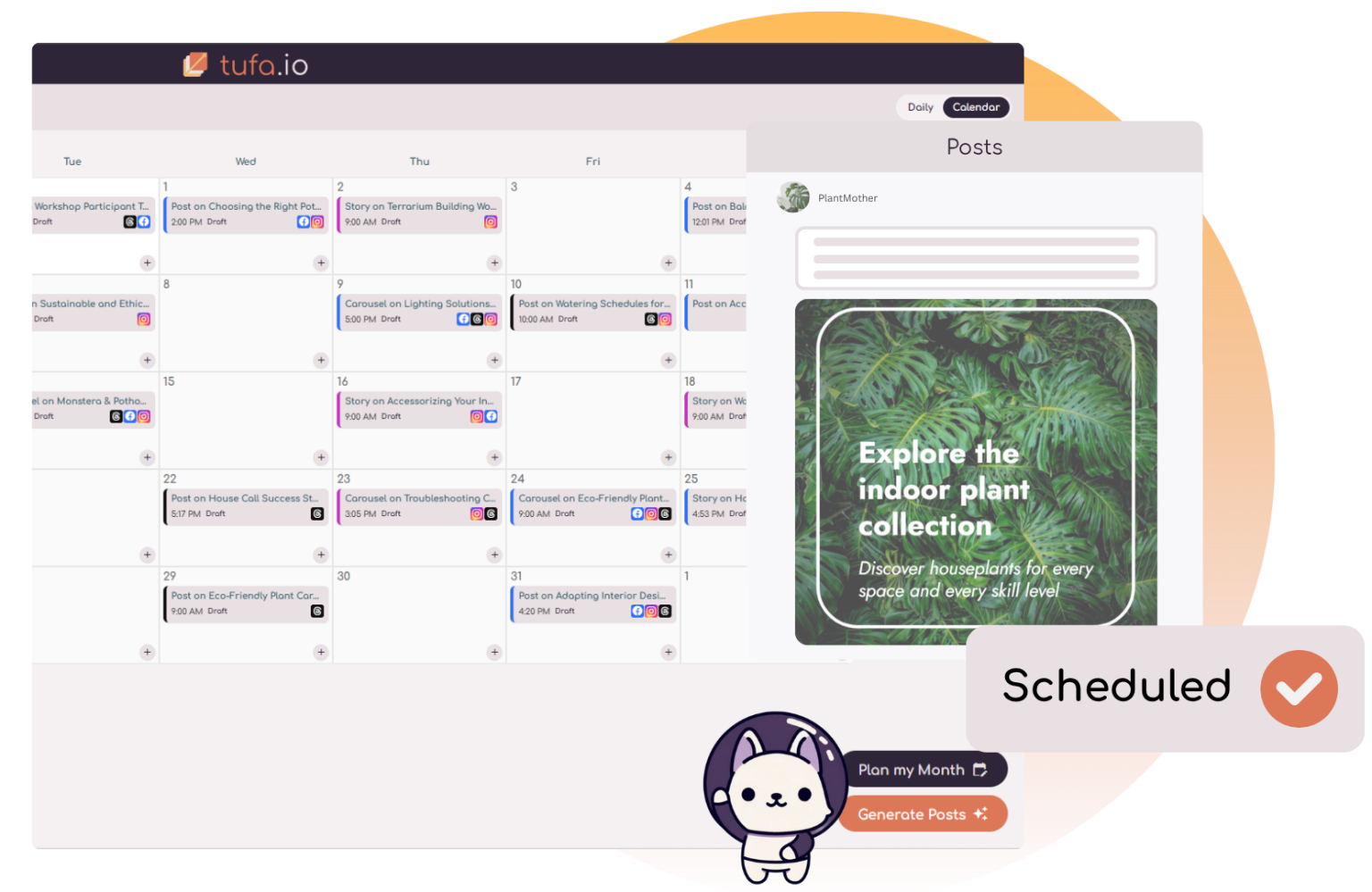 Tufa handles scheduling & publishing across all your social platforms ensuring your posts go live even when you’re not online.